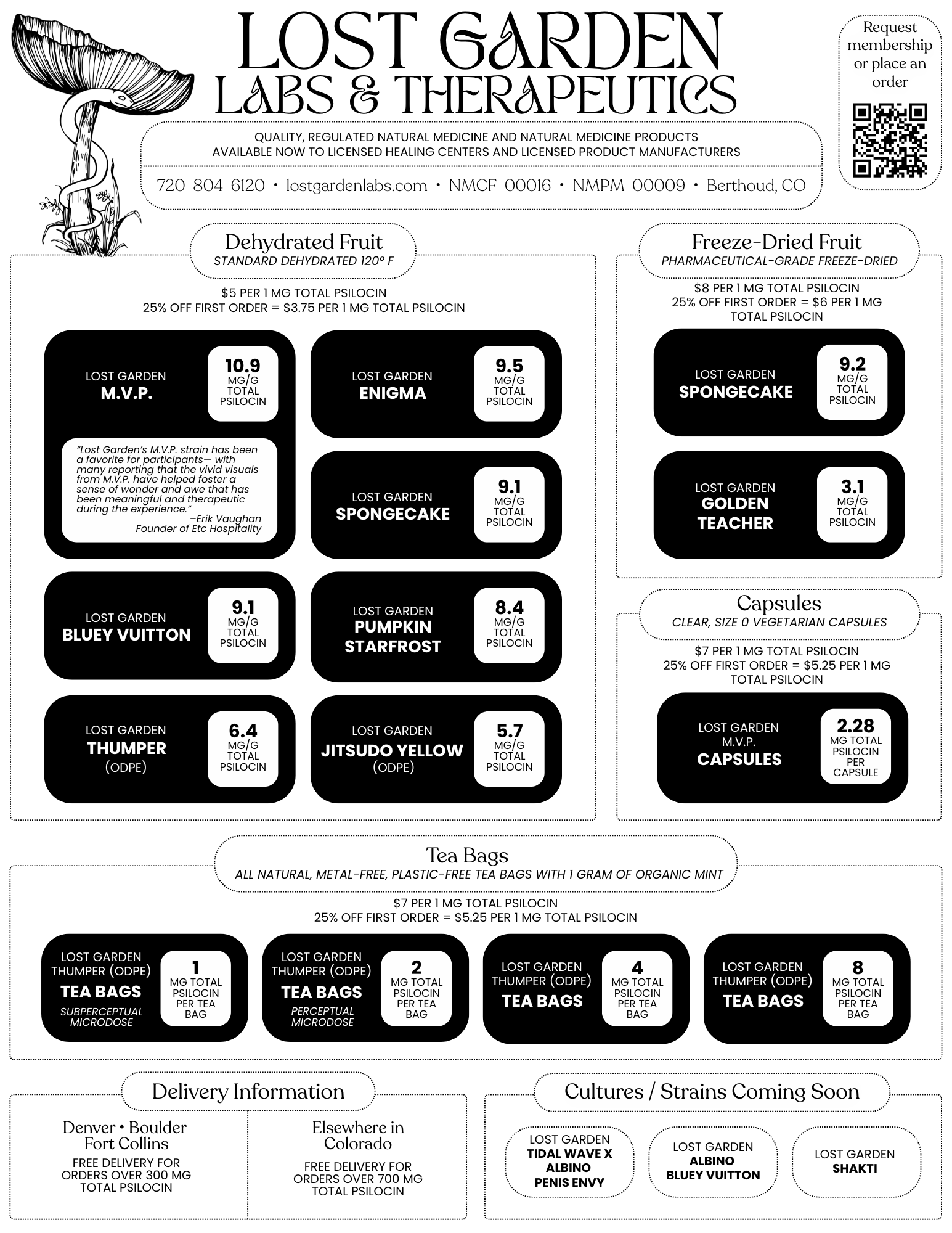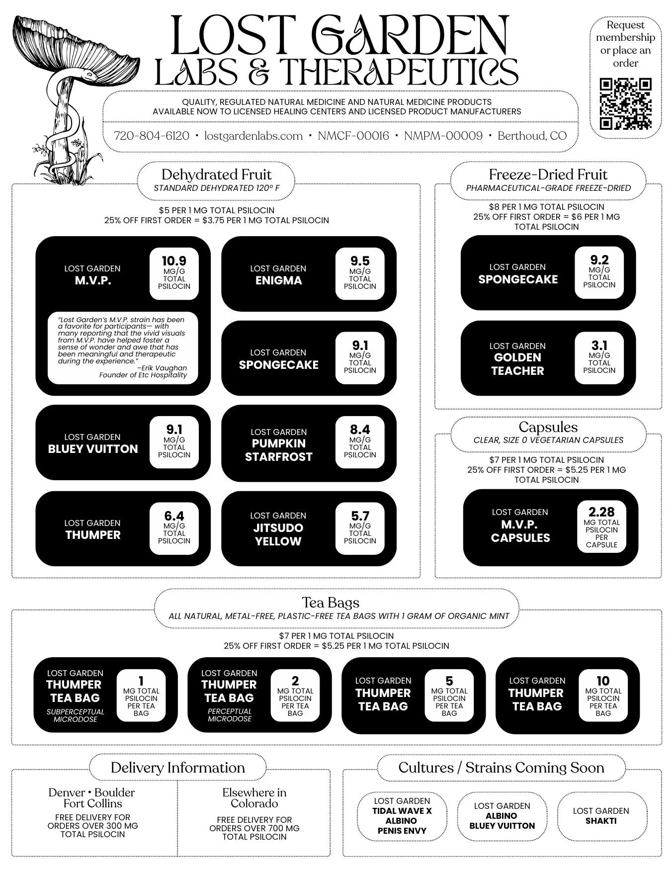 “We love working with the team at Lost Garden. They are consummate professionals, and their passion for the healing power of mushrooms shines through in everything they do. The Colorado program is lucky to have them!”
